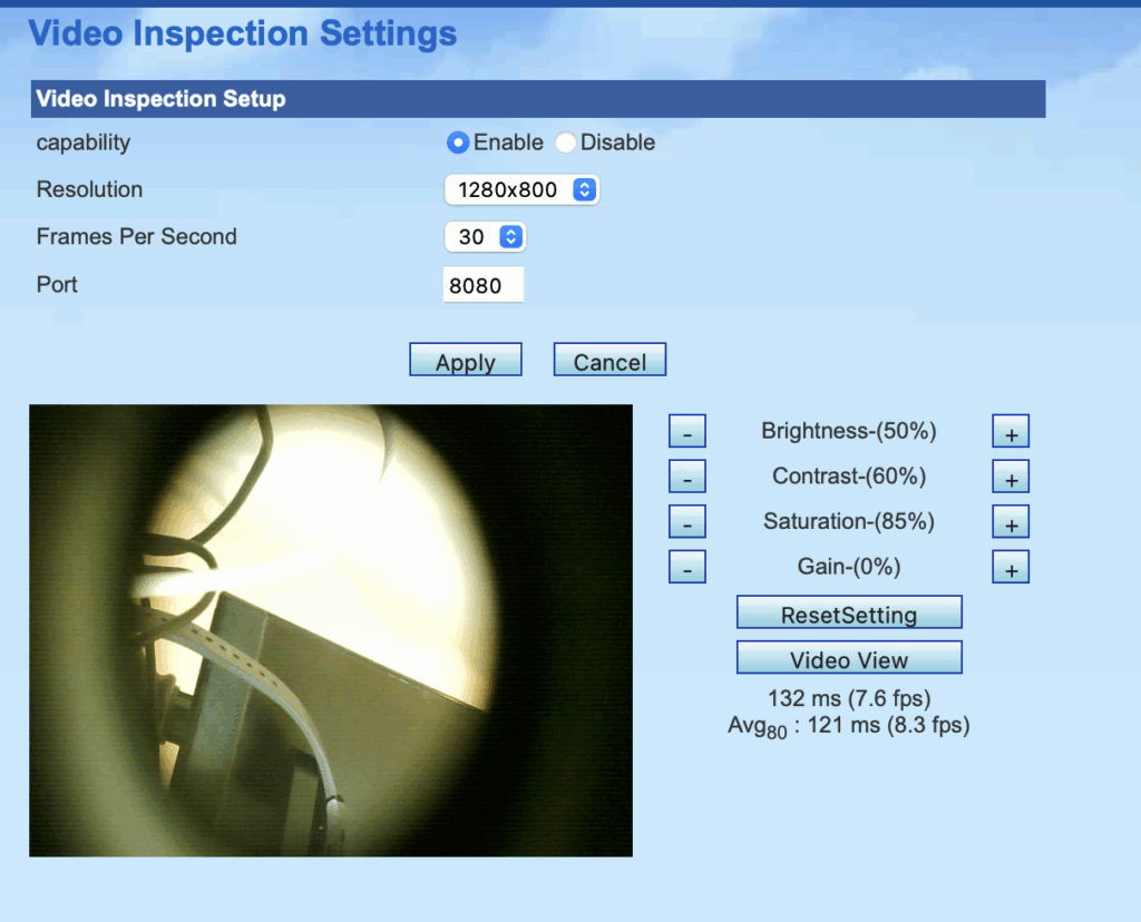 Once it was on the network and accessible locally, I could access the webapp, which can be used to view the feed from the camera directly and set some parameters.